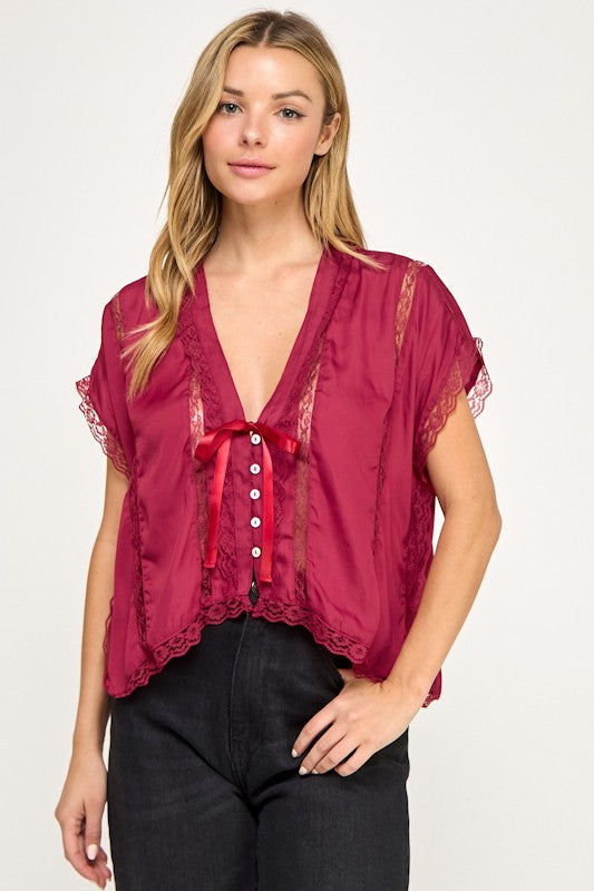 SILKY LACE TRIM BLOUSE - OFF WHITE
