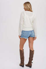 BUTTON FRONT LACE KNIT TOP - IVORY
