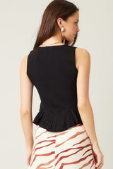 KNIT RUFFLE HEM SWEATER TANK - BLACK