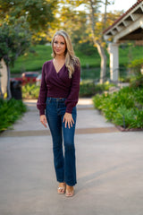 SURPLICE V-NECK SWEATER - DARK CHERRY