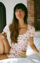 Soft and lightweight, these relaxed shorts feature a playful ditsy flower print and an easy mid-rise elastic waistband. Crafted from silky pointelle fabric, they’re perfect for lounging with a touch of charm.