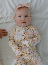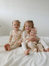 FLOWER FIELDS ZIP PAJAMAS - PEACH/YELLOW/CREAM