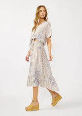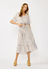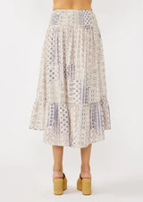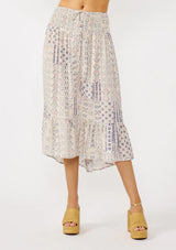 ELUNA SMOCKED SKIRT - OATMEAL/PLUM