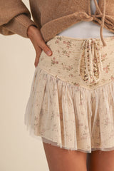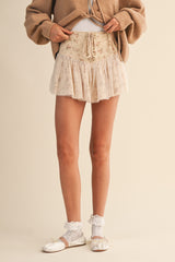 GAUZE & TULLE LACE UP SKORTS - CREAM
