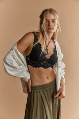 Sweepingly romantic with oversized petals, this stunning, fairy-like bralette from Intimately is adorned with a scalloped lace fabrication, microfiber lining at the cups, and a plunging V-neckline for an ethereal style perfect for layering with your favorite sheer tops or wearing solo.