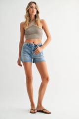 This high-rise stretch short is crafted in a light denim wash and finished with a classic regular hem. Designed with a subtle hidden split at the sides, it delivers effortless movement and a flattering fit.