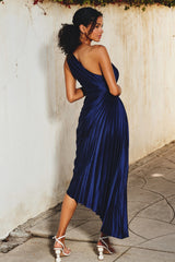 ASYMMETRICAL PLEATED MAXI DRESS - MIDNIGHT NAVY