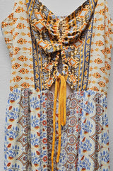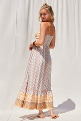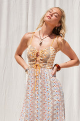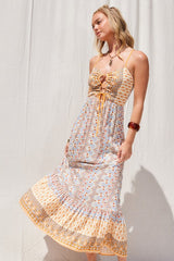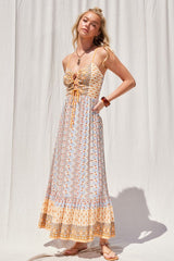 BORDER PRINT CUT OUT MAXI DRESS - CREAM MULTI