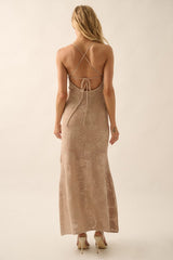 CROCHET KNIT LACE MAXI DRESS - SAND