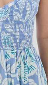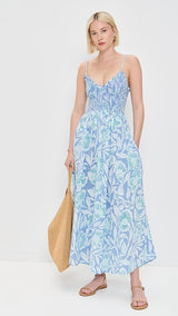 Made to be dressed up or down, this midi is featured in a soft cotton fabrication and printed design with a smocked bodice and classic scoop-neckline.