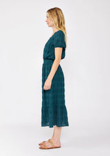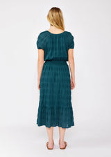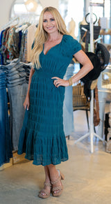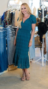 PUFF SLEEVE MIDI DRESS- DEEP TEAL