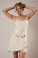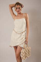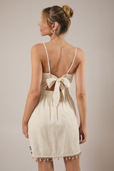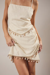SHELL TRIM DETAILED MINI DRESS - OATMEAL