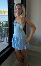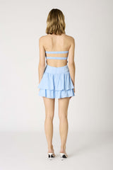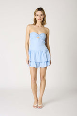 TWIST FRONT STRAPLESS MINI DRESS - SKY