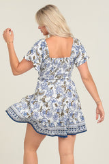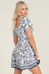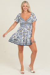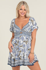 V-Neck Twist Front Mini Dress - Cream/Rust