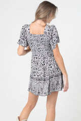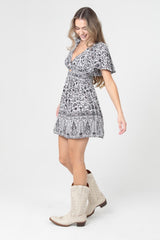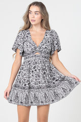 V-Neck Twist Front Mini Dress - Cream/Rust