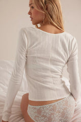 This crisp long sleeve from Intimately features a soft cotton fabrication, a subtle pointelle design, and a button-up front for an adjustable, cozy, everyday style.