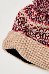 The most effortless blend of cool and classic, this super cute and cozy beanie is featured in a staple silhouette with fair isle printing at top, defined ribbed knit bottom hem, and fun pom pom detail at top for the perfect finishing touch.