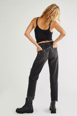 FREE PEOPLE TAPERED BAGGY BOYFRIEND - OBSIDIAN