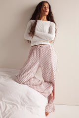 Dainty in heart-shaped dots, these adorable woven pants from Intimately feature an ultra-soft, textured cotton fabrication, contrast stitching details, and side pockets for a cozy, loungewear style you’ll reach for again and again.
