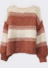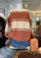 COLOR BLOCK FUZZY KNIT SWEATER - OATMEAL/RUST