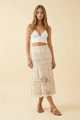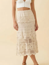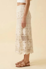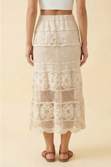 FLORAL PATTERN CROCHET MIDI SKIRT - CREAM