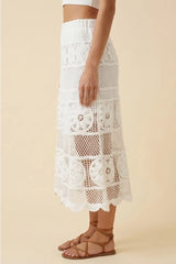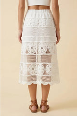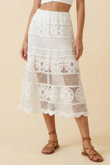 FLORAL PATTERN CROCHET MIDI SKIRT - OFF WHITE