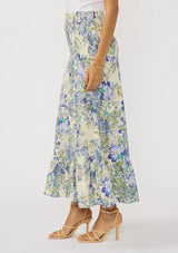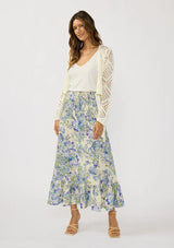 MELINA SMOCKED FLORAL SKIRT - CREAM/DUSTY LILAC