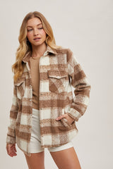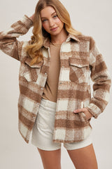 SNAP FRONT PLAID SHACKET - MOCHA COMBO