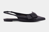 Meet Audrey, our sleek slingback flats designed for effortless elegance. Crafted from soft faux leather with a pointed toe and a bold bow detail, these flats offer both style and comfort. The cushioned insole ensures all-day wear, while the flexible sole provides easy movement. Perfect for dressing up or down, Audrey adds a polished touch to any outfit.