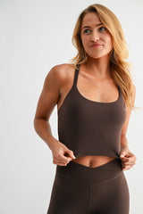 Elevate your activewear. Made from buttery soft, lightweight, and stretchy fabric, this bra combines comfort and performance in a sleek design. Featuring a built-in bra for effortless support, it boasts a criss-cross back detail for a touch of sexy sophistication and delicate two-strap detailing in the front for added charm. Perfect for pairing with your favorite leggings for the studio or wearing as a chic lifestyle tank, this versatile piece will have you moving confidently and stylishly all day long.
