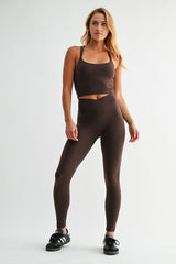 CROSSOVER WAIST LEGGINGS - ESPRESSO