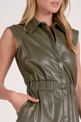 ELAN FARRAH FAUX LEATHER DRESS - PINE