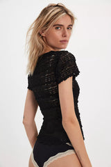 FREE PEOPLE ANGELINA LACE TEE - BLACK