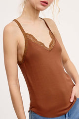 LACE DETAILED RACER BACK TANK TOP - SADDLE