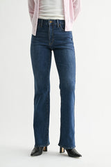 Designed with a flattering mid-rise waist and a clean, elongated bootcut silhouette, this jean effortlessly balances comfort and polish. They hug the hips and thighs before a subtle flare at the ankle, finished with a clean regular hem for versatile styling.