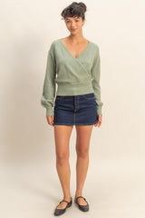 SURPLICE V-NECK SWEATER - SAGE GREEN