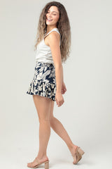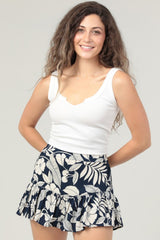 BOTANICAL PRINT RUFFLE SKORTS - NAVY