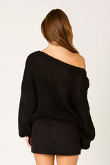 BOATNECK LOOSE KNIT SWEATER - BLACK
