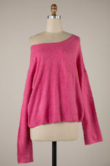 SOFT HEATHERED SWEATER - HOT PINK