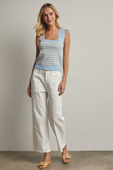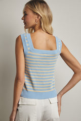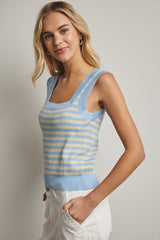 STRIPED SWEATER TANK - POWDER BLUE/ECRU