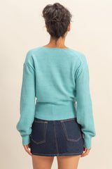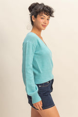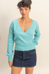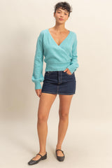 SURPLICE V-NECK SWEATER - SKY BLUE
