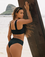 Elevate your traditional high-waisted bikini bottoms with the Bardot. These recycled beauties have perfectly-placed ruching and a v-front to accentuate all of your gorgeous curves.
