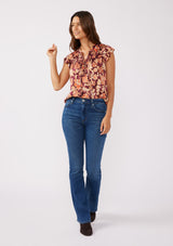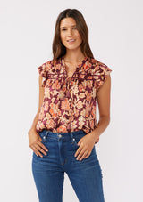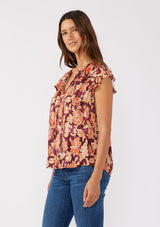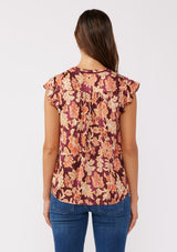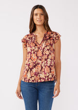 AMBER FIELDS FLUTTER SLEEVE TOP - WINE/DUSTY ROSE