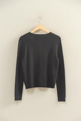 CREW NECK BUTTON UP CARDIGAN - BLACK