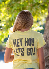 Let’s go…crank up your collection in this high energy, sun faded citron girlfriend tee featuring everyone’s favorite lyrics on the back. The club was CBGB, the street was Bowery & Bleeker, the band was The Ramones. A nod to where they first publicly debuted and quickly rocketed to star status, this new girlfriend tee is marked with New York City’s CBGB’s location and The Ramones’ crest. Fun fact, Bowery & Bleeker soon became home to a tribute mural of the icons painted by the fans.