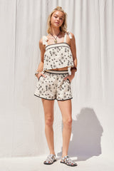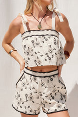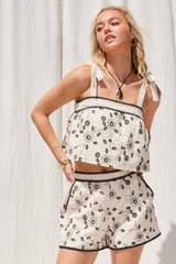 EMBROIDERED FLORAL CROP TOP - NATURAL/BLACK