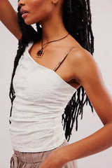 An elevated take on the classic tank, this top features textured detailing and a slim-fitting silhouette with an asymmetric neckline and adjustable shoulder straps.