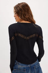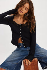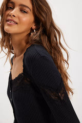 Lace trims give this waffle-knit cardigan the perfect femme touch.
