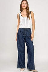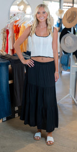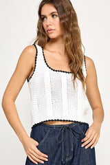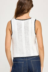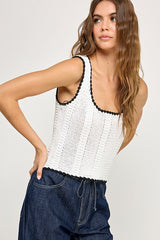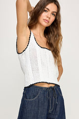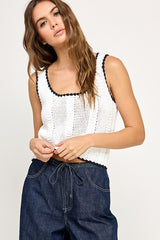 KNIT CROCHET TANK TOP - OFF WHITE/BLACK