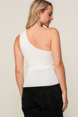 ONE SHOULDER RIBBED SWEATER - IVORY